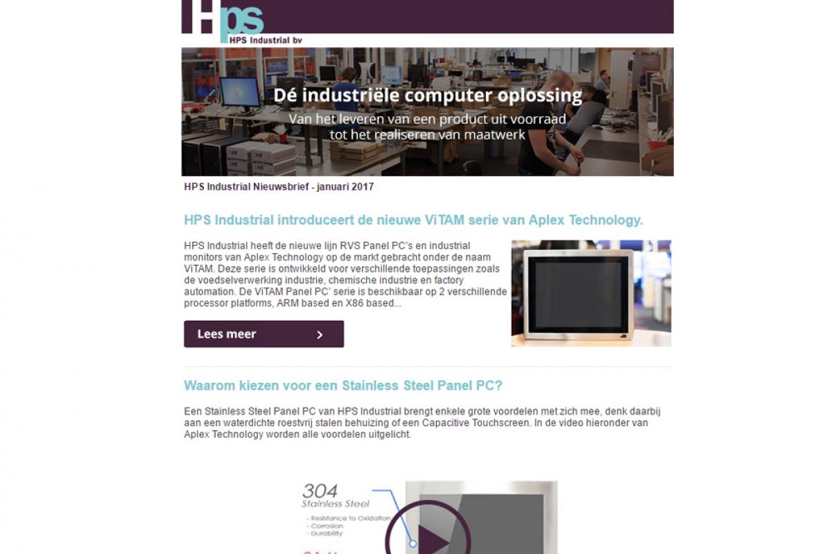 HPS Industrial bv lanceert vanaf januari 2017 een maandelijkse nieuwsbrief. In deze nieuwsbrief vermelden we het laatste nieuws, de nieuwste cases en de nieuwste producten. De klant is daardoor altijd op de hoogte van de laatste ontwikkelingen binnen HPS Industrial bv. Aanmelden voor deze nieuwsbrief kan via de inschrijven knop aan de onderkant van deze pagina, of via de onderstaande button.